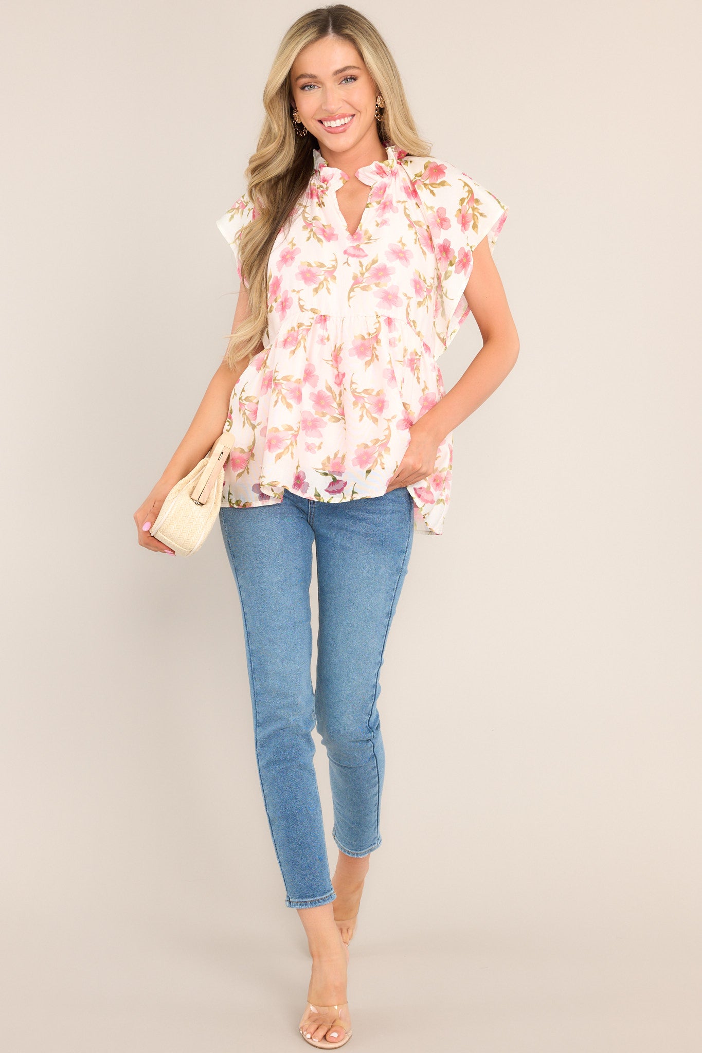 Spruce up your wardrobe with the Signs of Spring Light Pink Floral Peplum Top! Its delicate floral pattern and playful peplum silhouette add a touch of whimsy to any outfit. Perfect for transitioning from winter to spring, this top will surely become a seasonal favorite! This top features a ruffled v-neckline, a flared waistline, wide sleeves, and a delicate floral pattern.