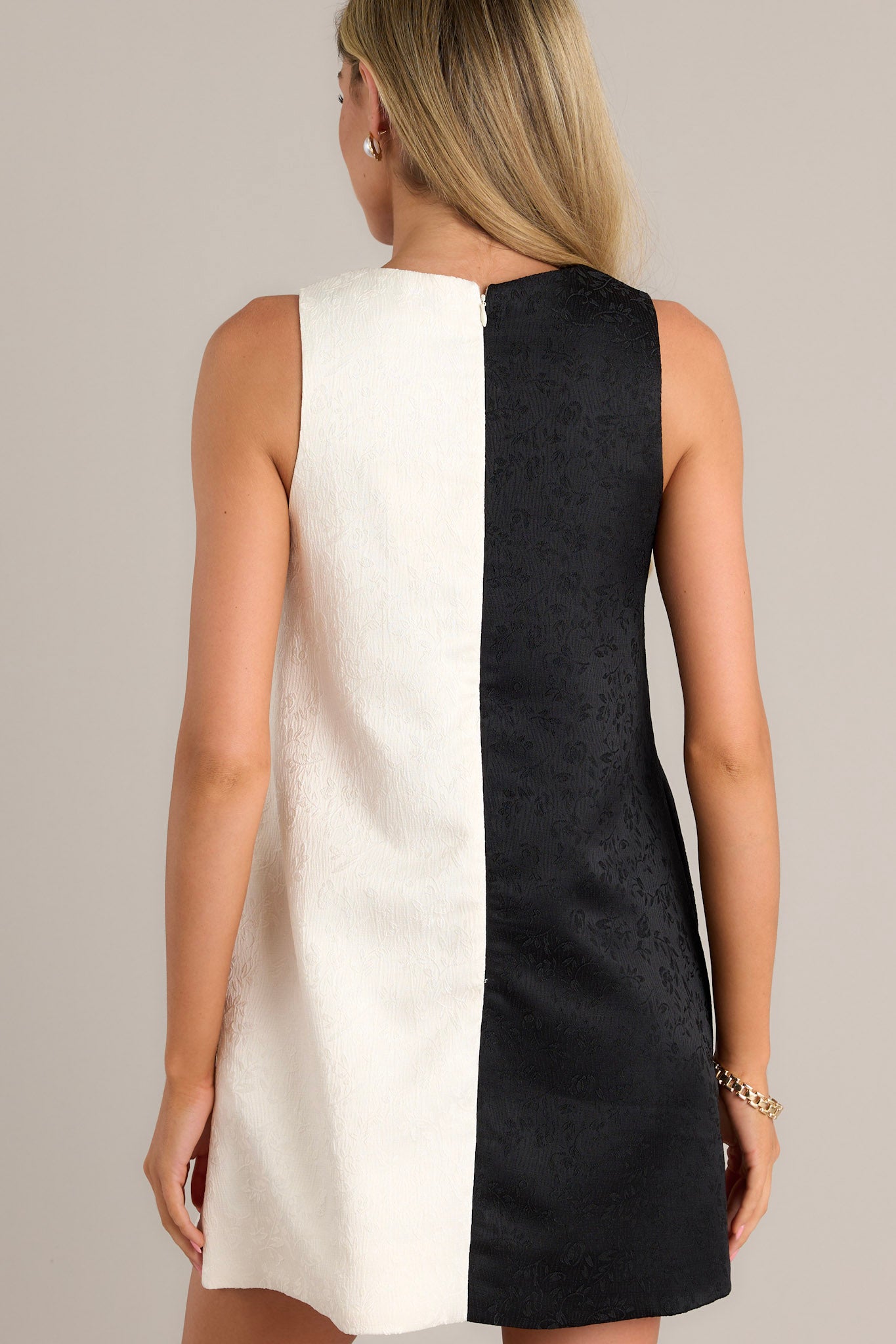 Experience the ultimate in style with our Simply Unmatched Black Jacquard Sleeveless Mini Dress. Made with quality fabric, this playful and flirty mini dress will have you standing out from the crowd. Make a statement and turn heads with this one-of-a-kind dress that is simply unmatched! This black mini dress features a crew neckline, a discrete zipper, a faux textured buttons, a color block design, functional hip pockets, and a sleeveless design.