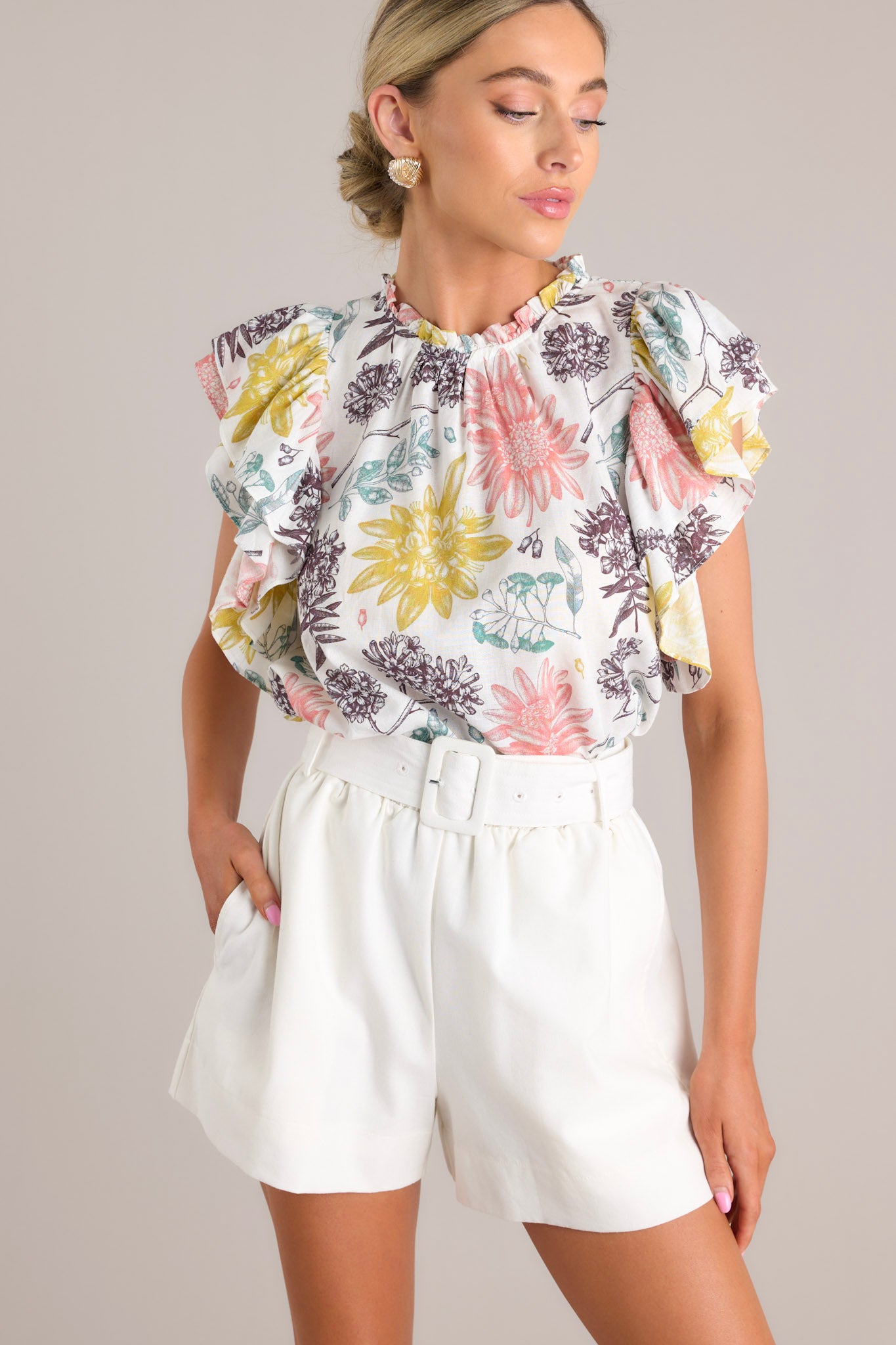 Upgrade your style with our State Of Mind Ivory Belted Shorts! With its chic belted design, these shorts will elevate any outfit. Perfect for a day out, these versatile shorts will become a staple in your wardrobe. Grab yours now and add a touch of sophistication to your look! These shorts feature a high waisted design, an elastic waistband, a square buckle fabric belt, belt loops, and functional pockets.