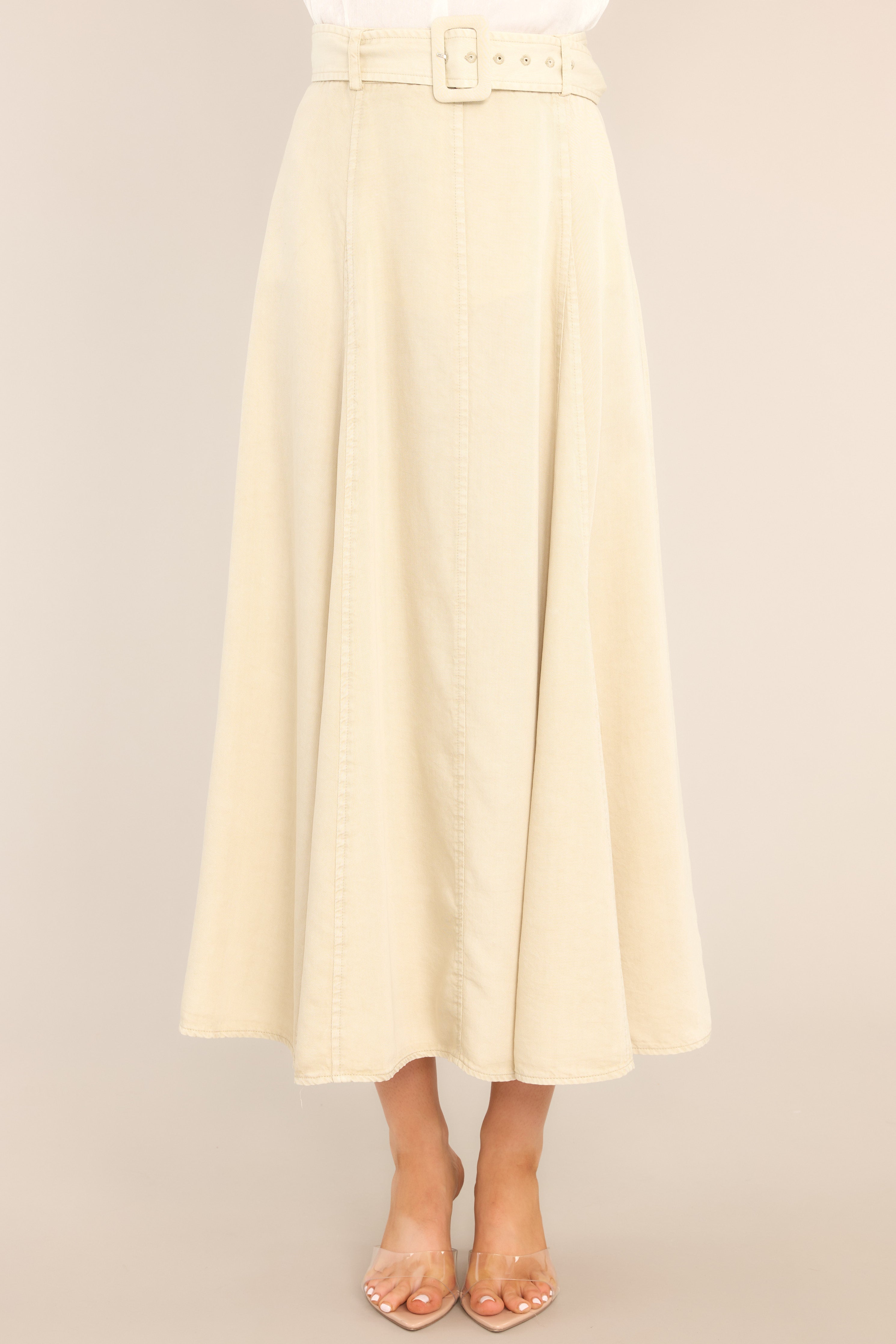 Take a twirl in our Stay True Beige Maxi Skirt and keep it real! This skirt will keep you looking and feeling effortlessly chic. Made with a flowy fabric to keep you comfortable while looking stylish. Pair it with heels, sandals, or even sneakers! This skirt features a high waisted design, belt loops, a functional belt, a zipper with a hook closure in the back of the waist, and exposed seams.