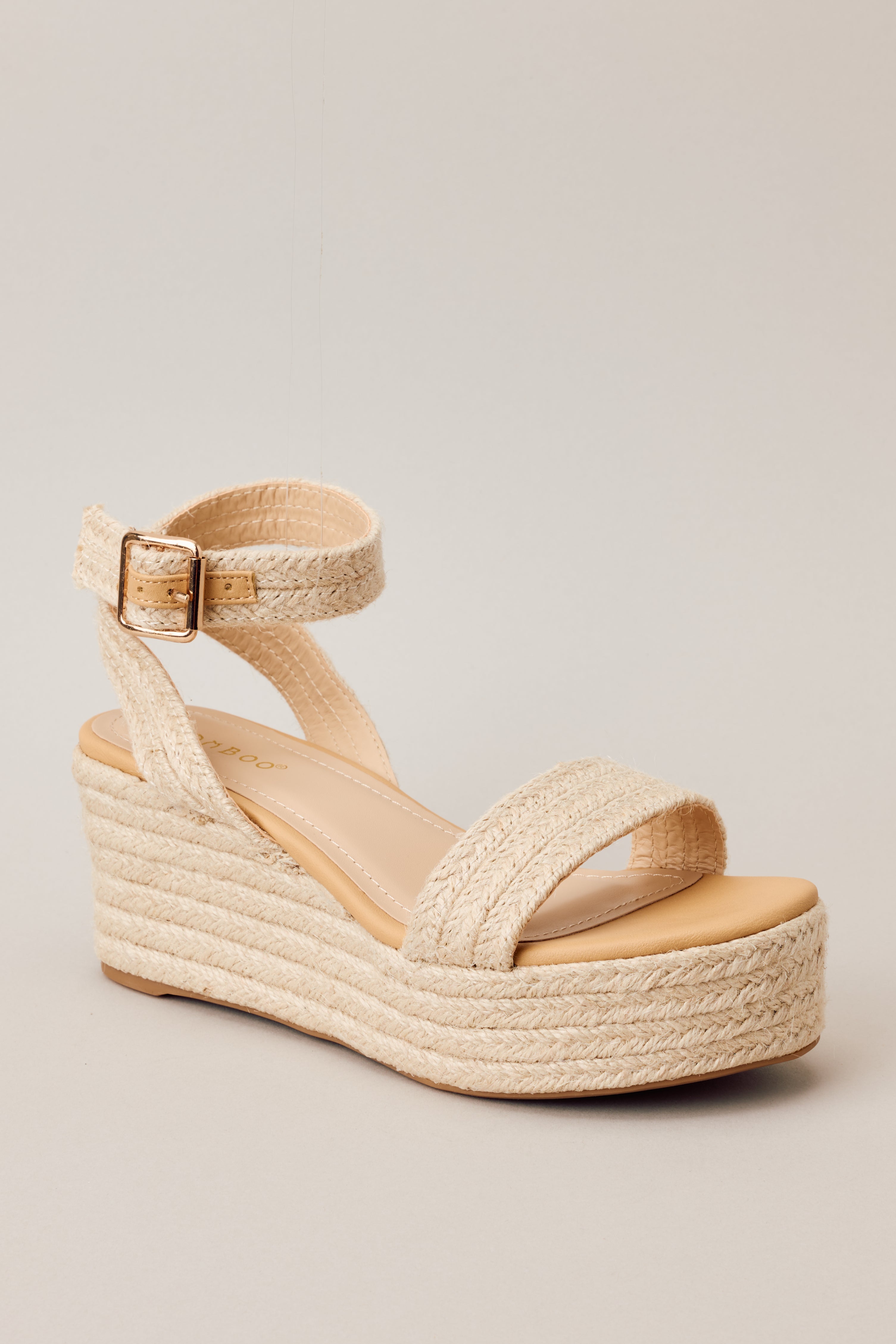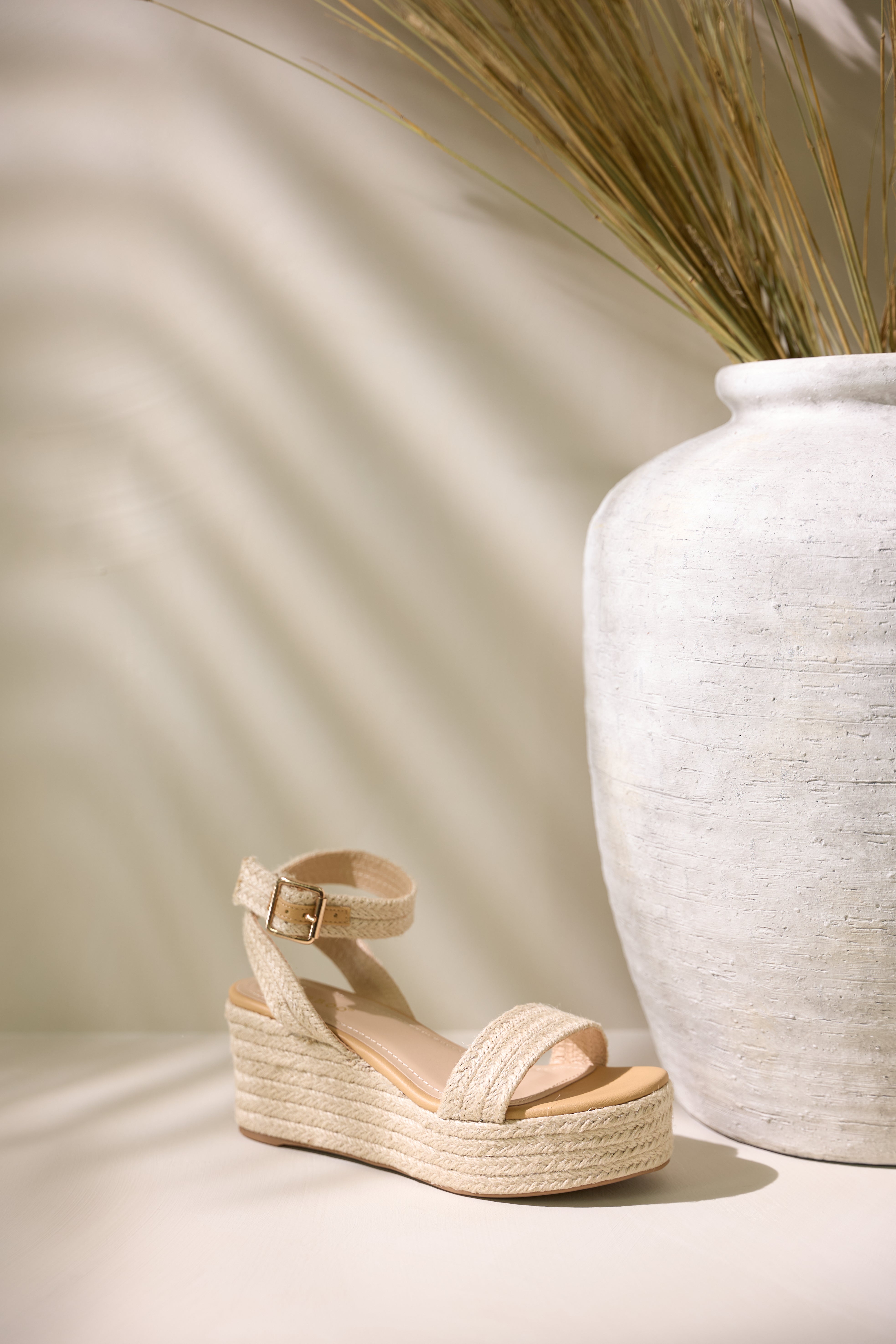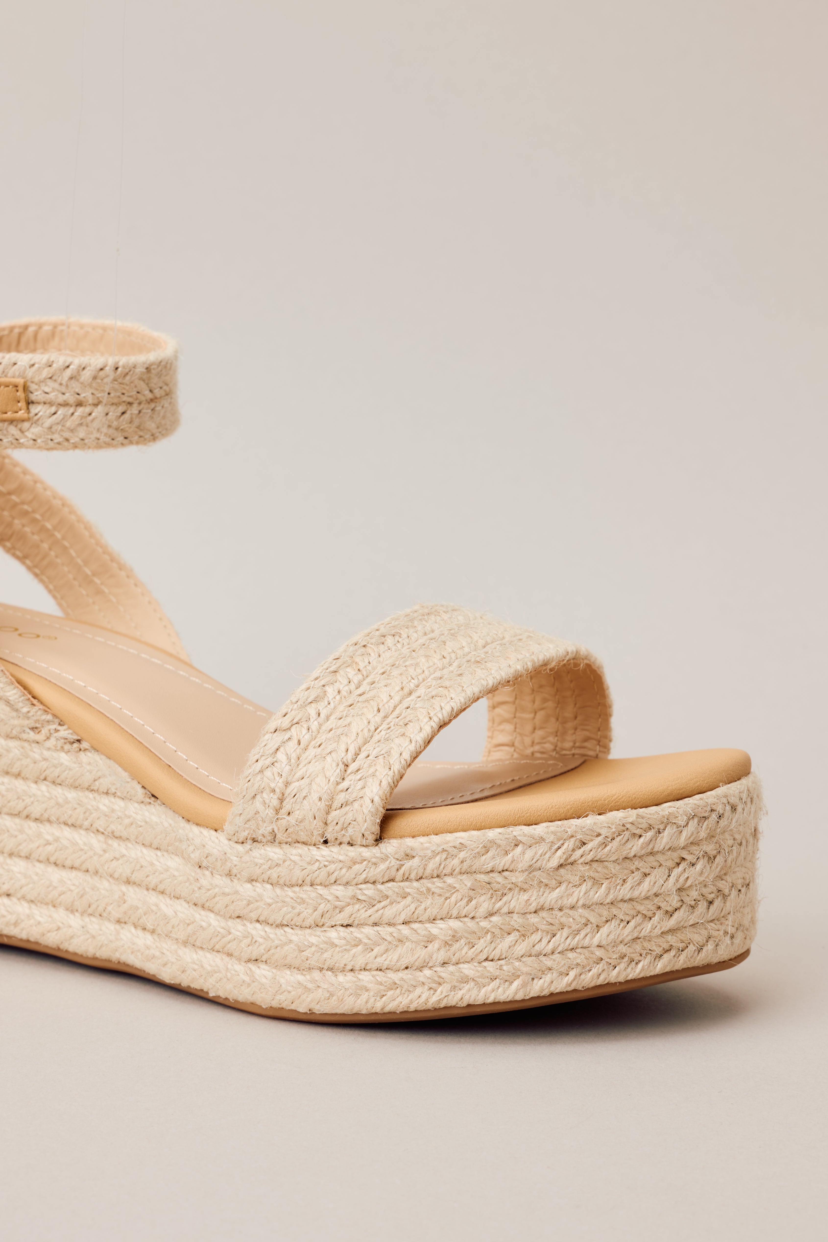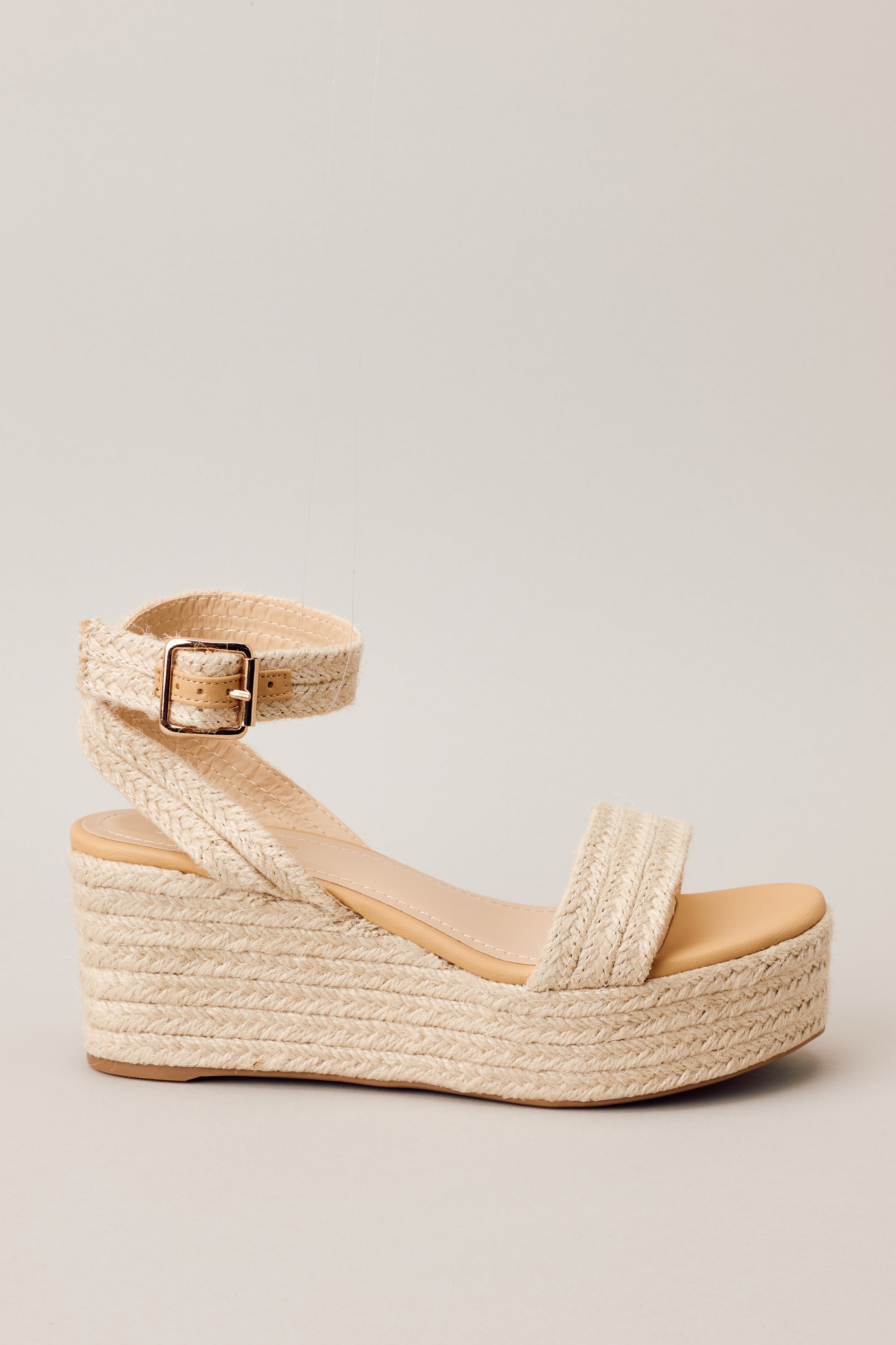 Elevate your style with the Sunny Steps Espadrille Platform Wedge Sandals! With a textured platform and bold wedge heel, these sandals will add a sense of adventure to any outfit. The espadrille detailing adds a touch of risk-taking flair, making these sandals perfect for the fashion-forward individual. Step out in confidence and take on the day with these statement-making wedges! These wedges feature a rounded open toe design, an espadrille strap over the top of the foot, an espadrille strap around the ankle with a functional buckle, and an espadrille wedged platform.