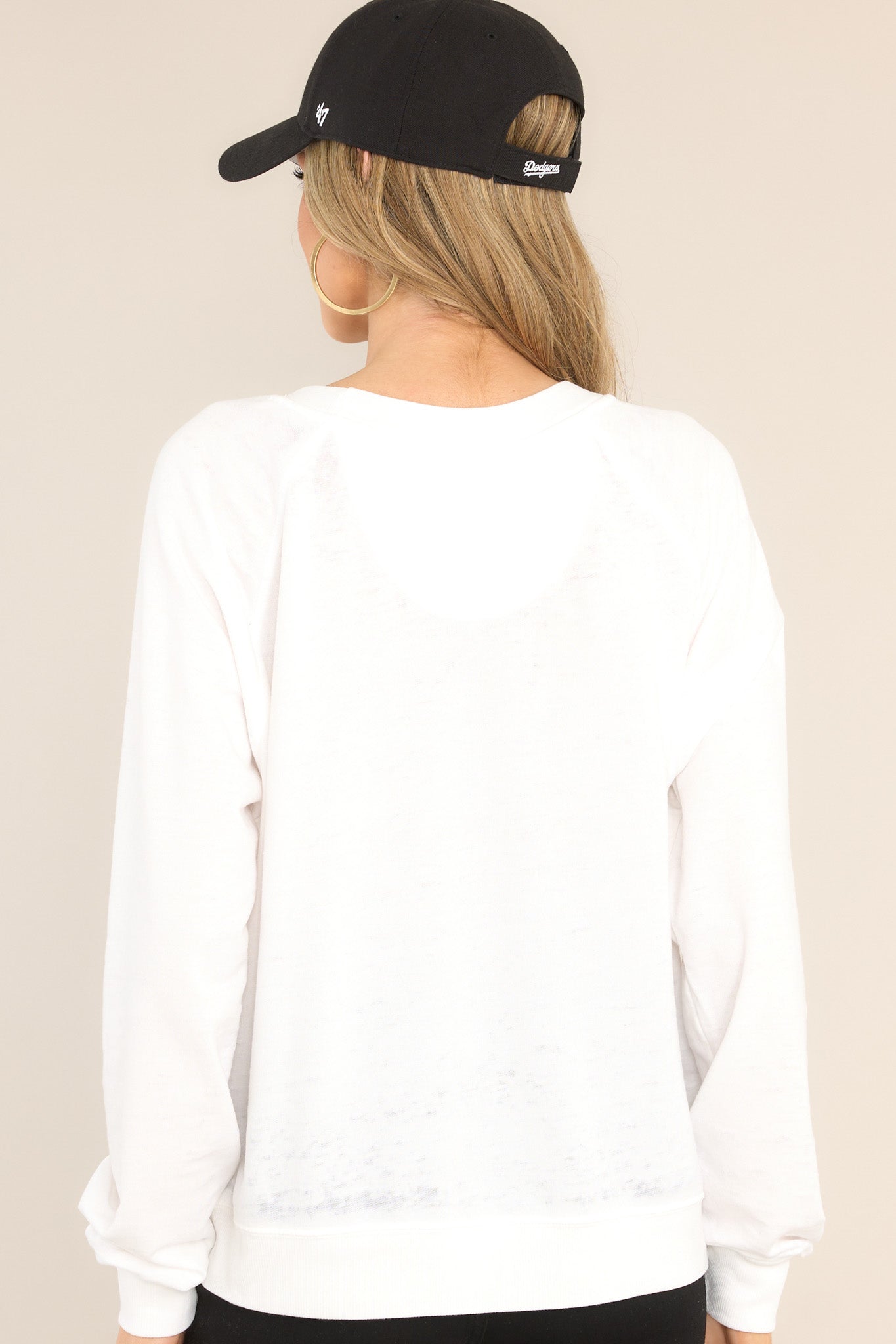 Undergarments: We recommend wearing a nude, seamless bra with this sweatshirt.