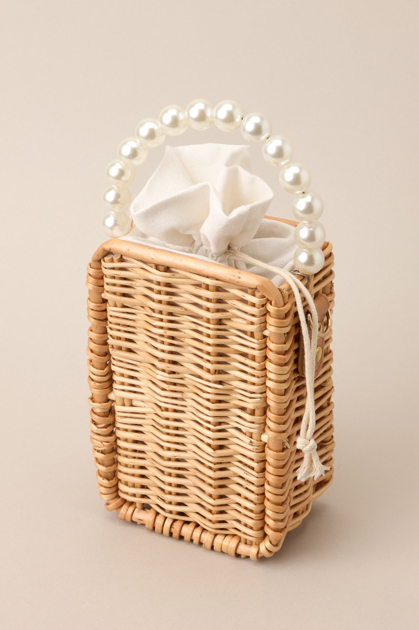 Introducing The Shoreline Natural Pearl Bamboo Bag! This unique accessory features sustainable bamboo material and a stunning natural pearl accent. Carry your essentials with a touch of elegance. Perfect for the fashion-forward individual! This bag features a faux pearl top handle, a removable faux pearl strap, and a cloth drawstring closure.