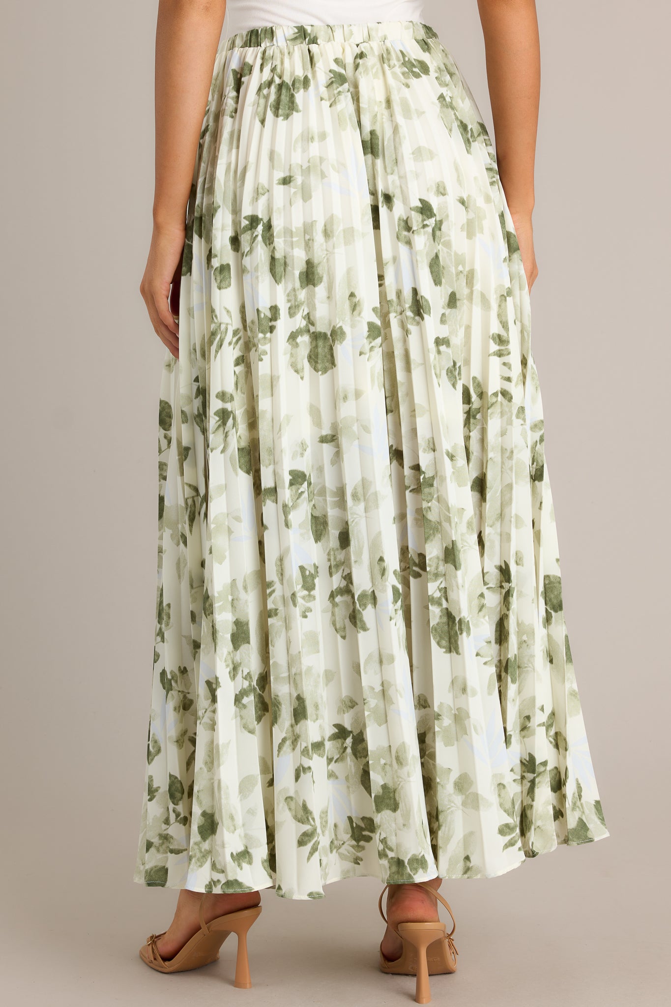 Verdant Garden Green Floral Pleated Maxi Skirt