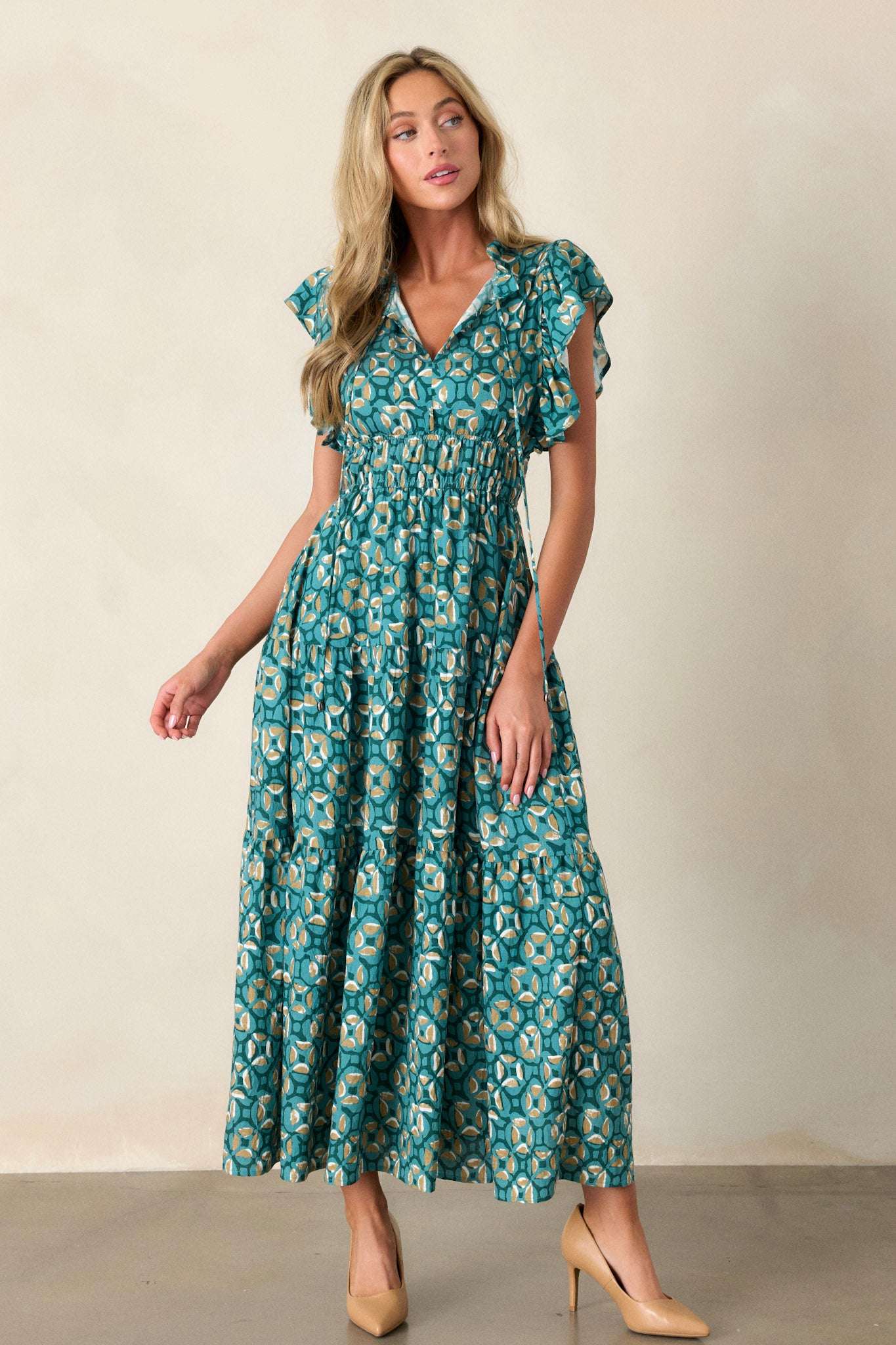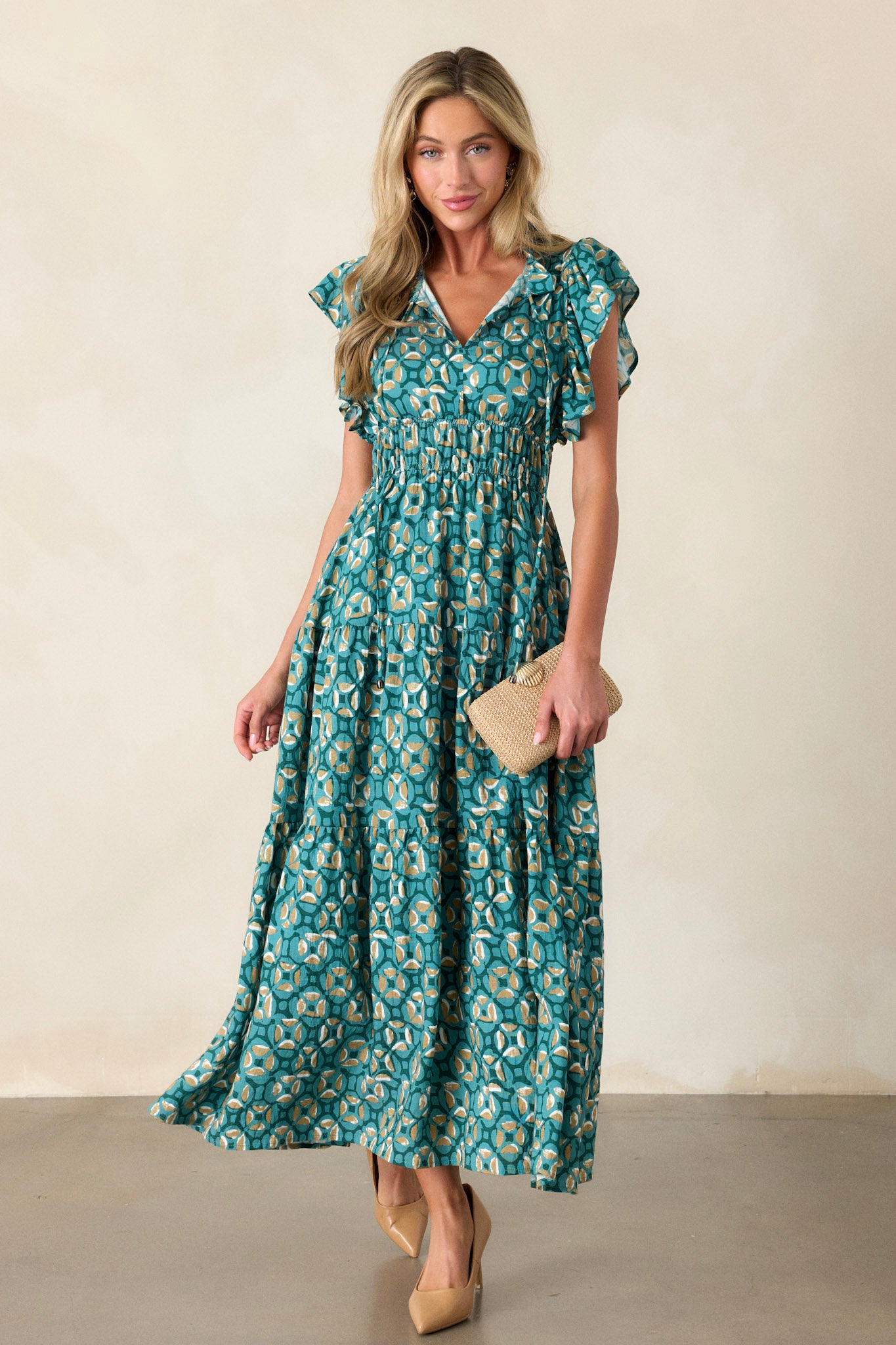 Vintage Vow Green Ruffle Sleeve Maxi Dress