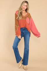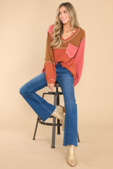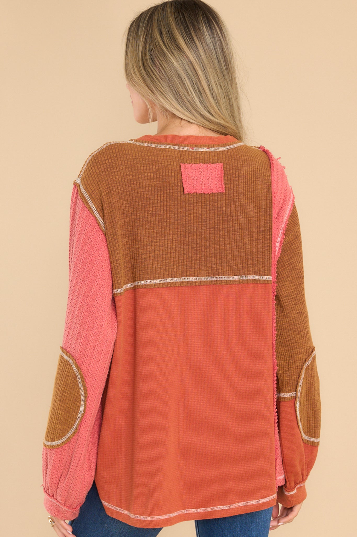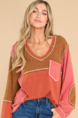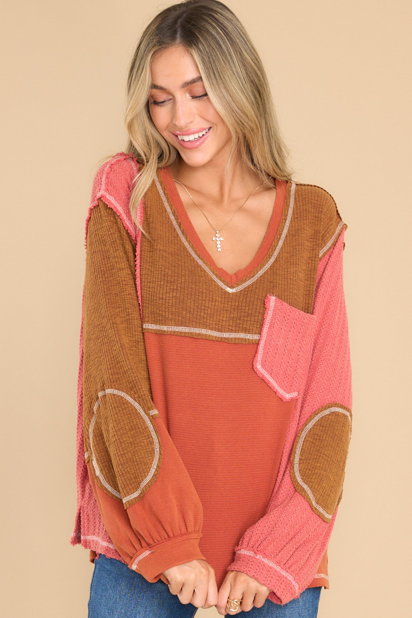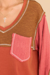 This Where Are You Now Brick Red Top will have you looking stylish for your next stroll in the park! Sanctioned by fashion, this top is a must-have to showcase your fashion flair. And with its brick red hue, you’re guaranteed to make a statement. So hurry up and get yours - you know you want to! This top features a v-neckline, a patchwork design, a breast pocket, and cuffed long sleeves. Model is wearing a size small. • 45% Polyester, 40% Rayon, 15% Nylon • Machine Wash Cold • Unlined • Imported
