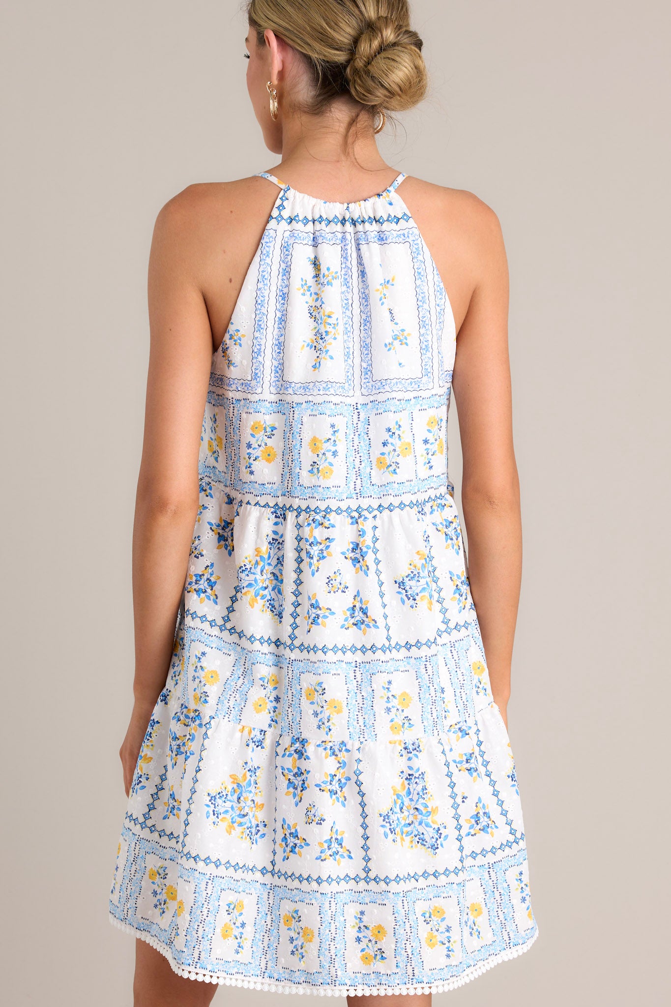 Whispering Meadows White & Blue Embroidered Mini Dress