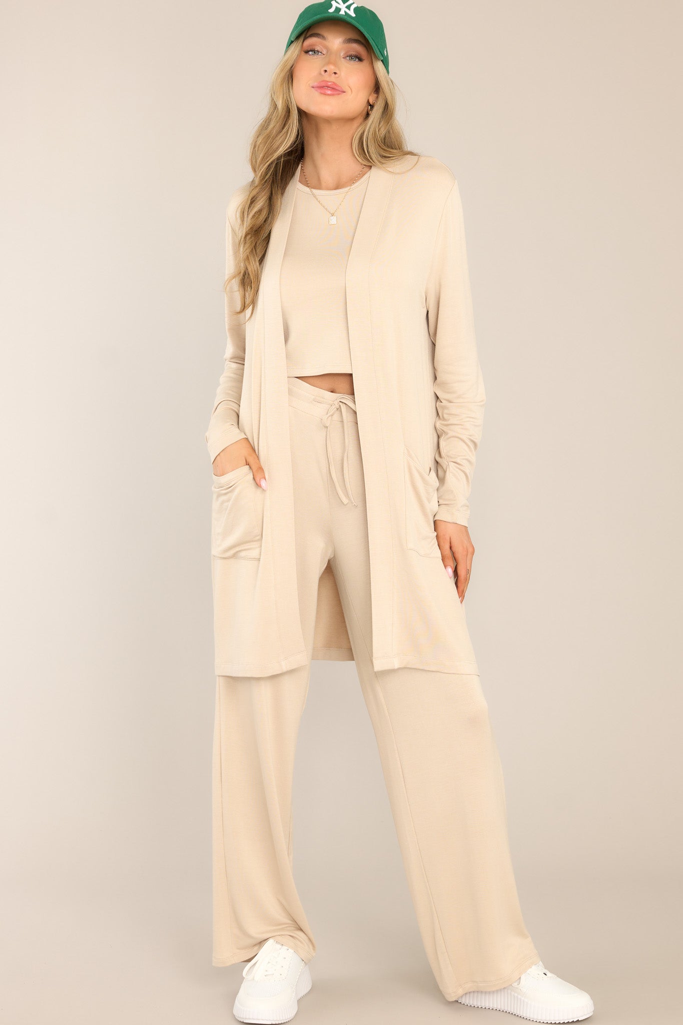 Effortlessly stylish, the With Ease Wide Leg Pants in natural beige offer a comfortable fit for day-to-night wear. Made from soft, breathable fabric, these pants provide ease of movement while adding a touch of sophistication to your outfit. Perfect for any occasion, whether you're running errands or hitting the town. These pants feature a high waisted design, a self-tie drawstring, functional pockets, and a wide leg.