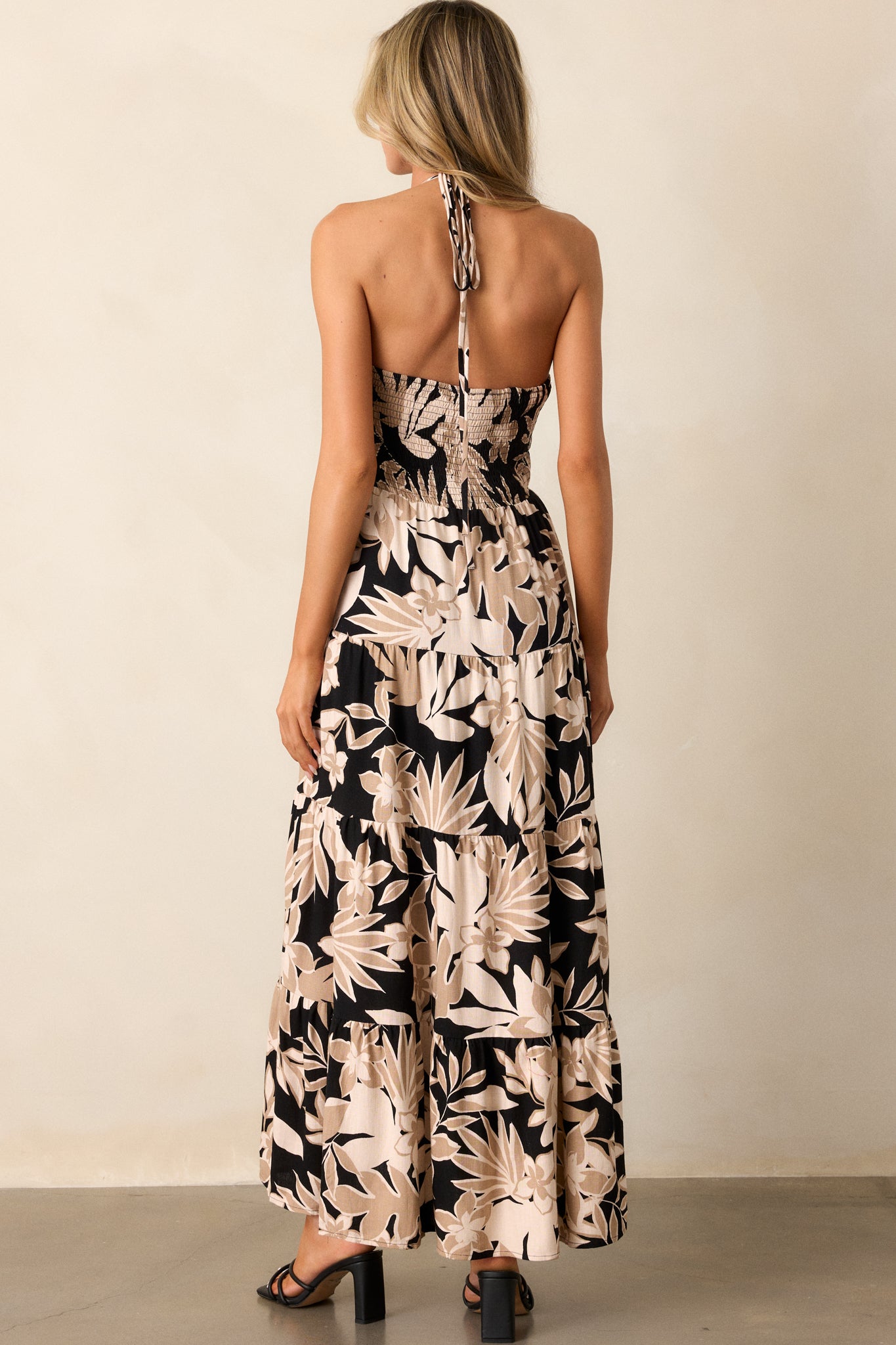 Stay stylish and comfortable with our "With Every Breath" Taupe Floral Halter Maxi Dress. Its flowy design and convenient halter neck make it perfect for any occasion. Embrace effortless elegance while enjoying the breathability of the fabric. This taupe dress features a halter neckline, flowy tiered skirt design, self tie neck, and smocked back.