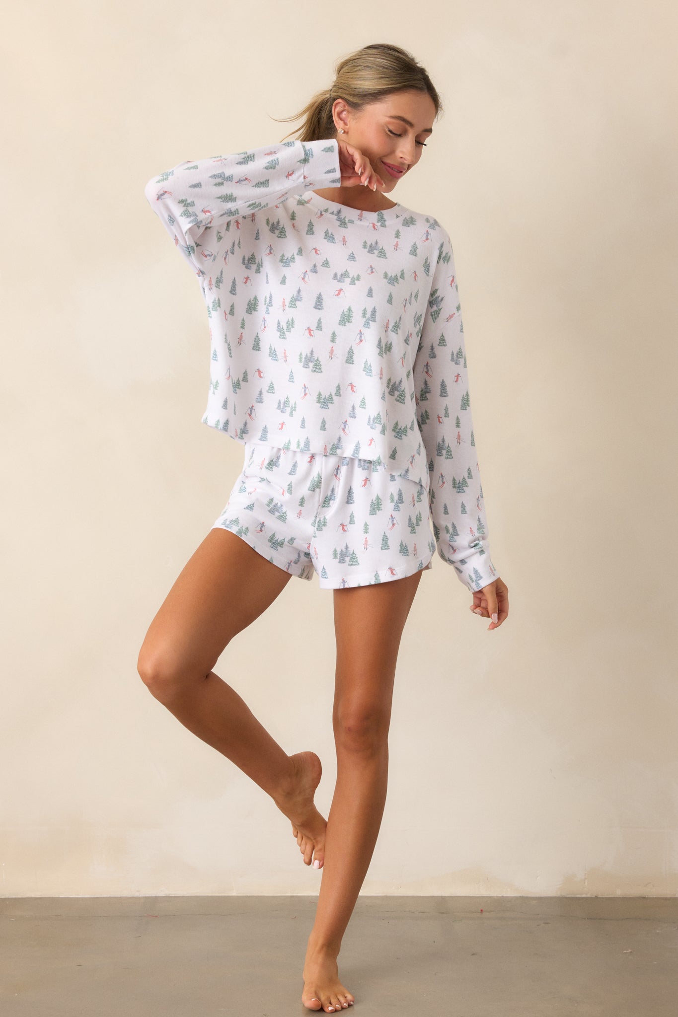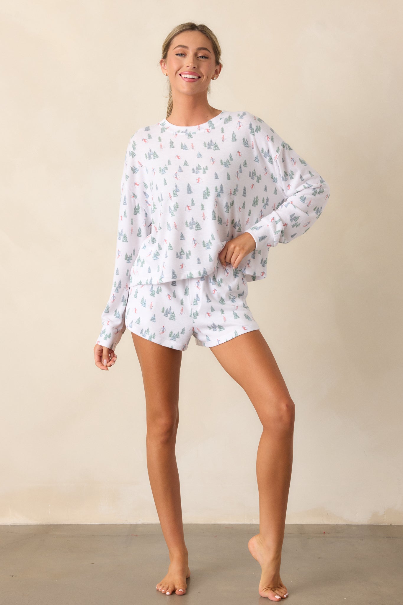 This Z Supply Alpine Skier Ivory Brushed Knit Top is the perfect addition to your winter wardrobe. Made with a cozy brushed knit, it will keep you warm and stylish on the slopes. The alpine skier graphic adds a playful touch to this versatile top. Perfect for both on and off the mountain. This ivory top features a crew neckline, relaxed fit, beautiful alpine ski design and long sleeves.