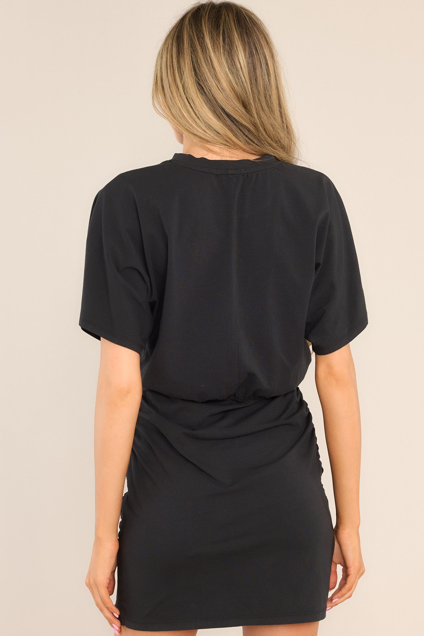Meet your new go-to dress: the Z-Supply Carmela Black Jersey Dress! Made with soft, comfortable fabric, this dress is perfect for any casual occasion. Its classic black color pairs well with any accessories, making it versatile and easy to style. Stay comfortable and stylish with the Carmela dress. This dress features a crew neckline, an elastic waistband, ruching down the sides, and wide sleeves. Belt is not included.