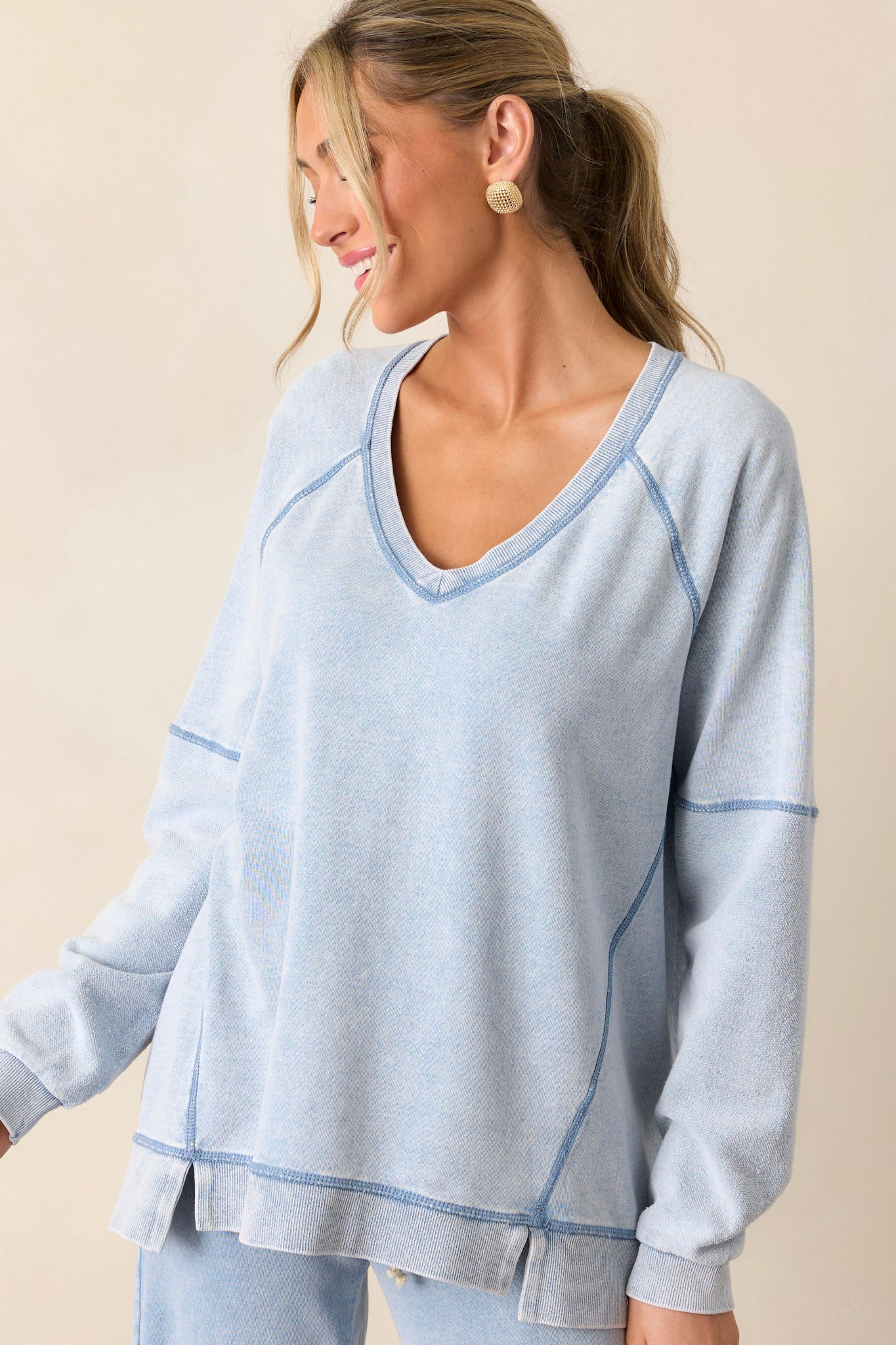 Z Supply Easy V-Neck Washed Indigo Knit Denim Sweatshirt