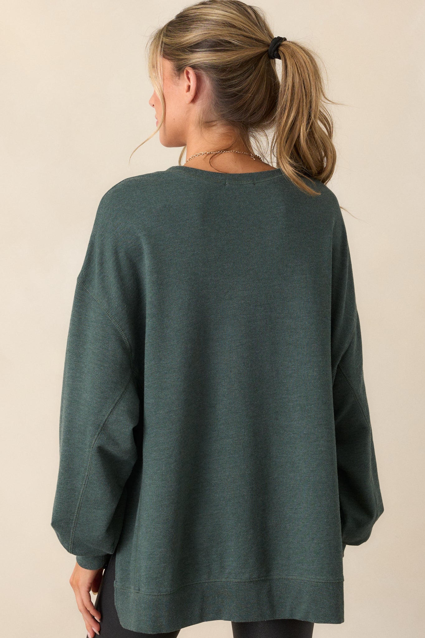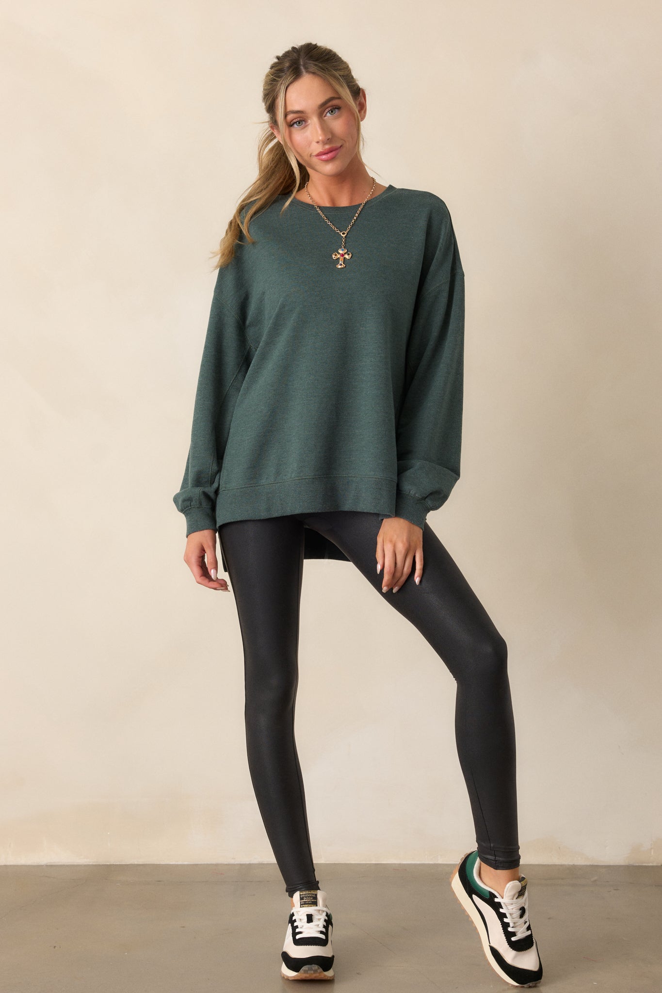 Expand your wardrobe with the Z Supply Forest Green Modern Weekender . Made from comfortable and soft fabric, this top is perfect for any occasion. The forest green color adds a pop of color to your outfit, and the crew neck design offers a classic and versatile look. Stay cozy and stylish with this must-have top. This forest green top features a crew neckline, oversized fit, split bottom hem, french terry fabric and long sleeves.