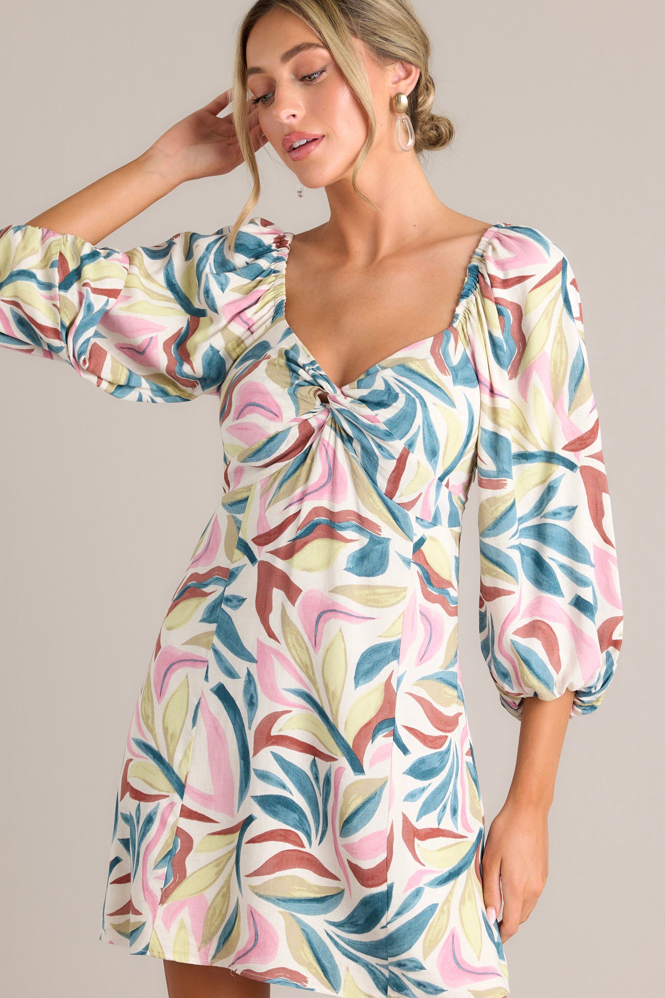 Introducing the Z Supply Mirani Safari Flax Mini Dress - perfect for both adventure and relaxation! Crafted with a lightweight material, this playful dress features a design that will keep you cool and stylish. Whether exploring the city or lounging on the beach, this dress has got you covered! This beige mini dress features a v-neckline, elastic shoulders, a twist detail in the bust, a smocked back insert, a discrete side zipper, and elastic cuffed quarter length sleeves.