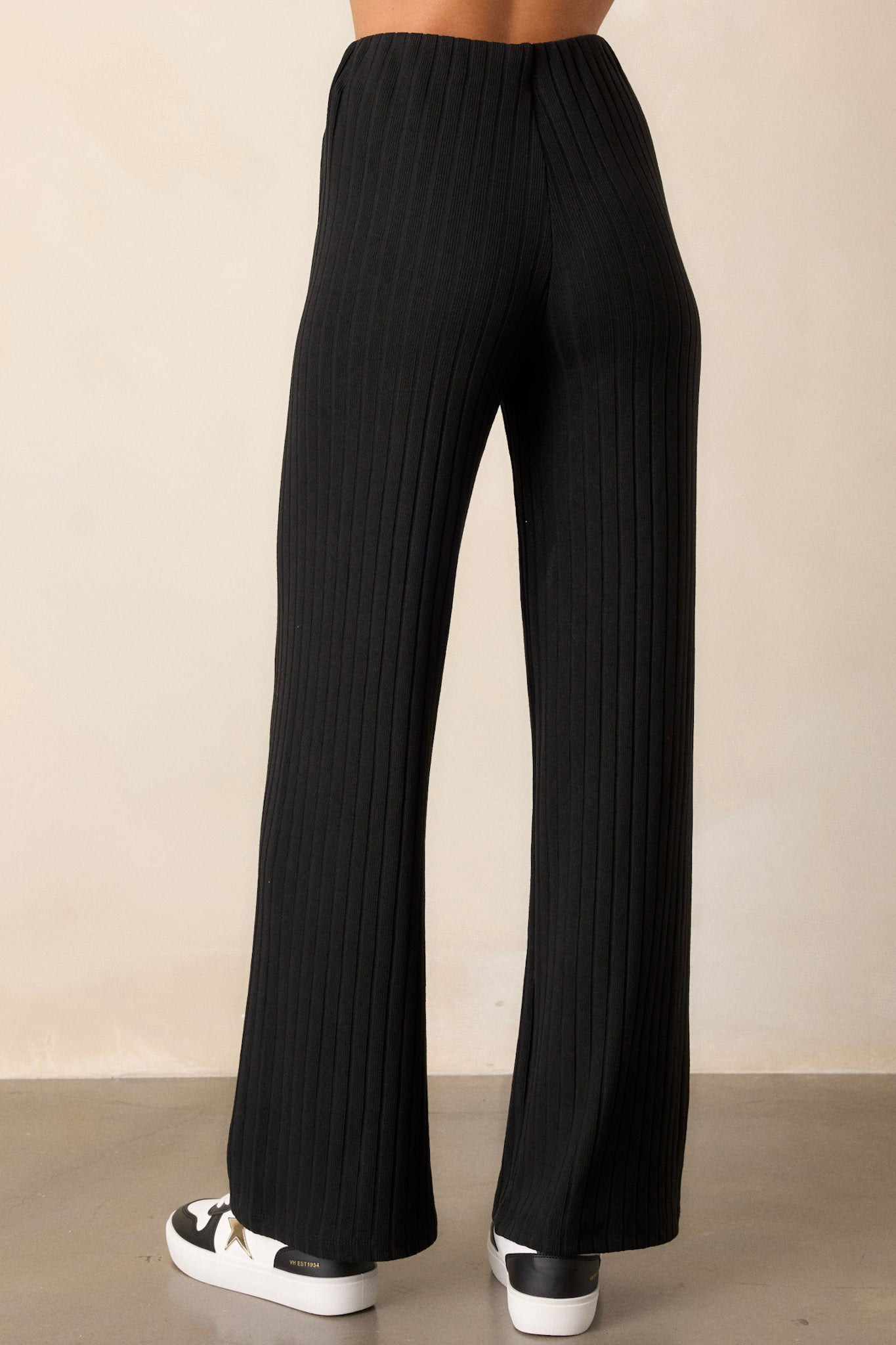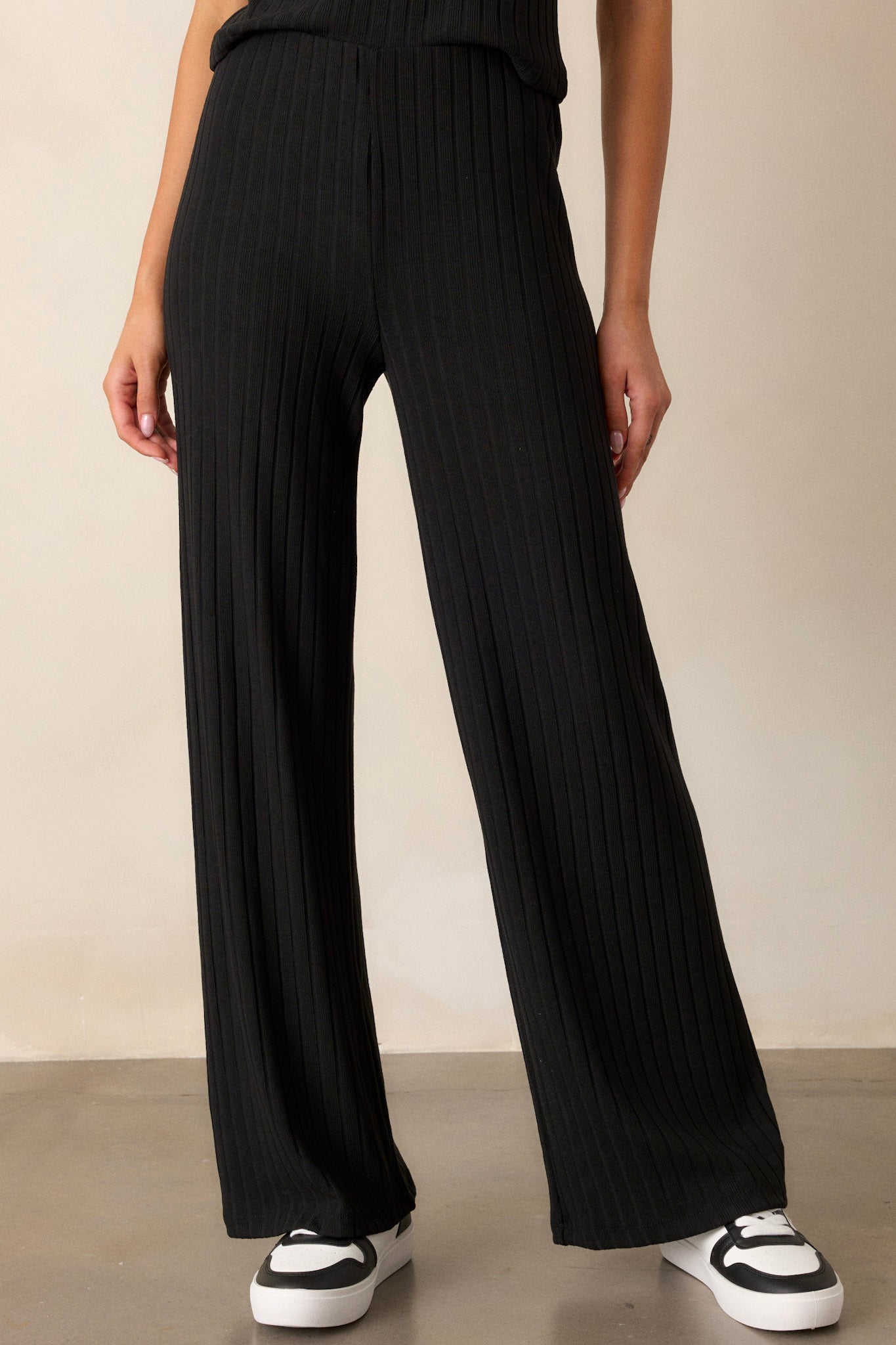 Upgrade your style with Z Supply Monte Black Rib Pants. Crafted with comfort and durability in mind, these pants feature a ribbed material that provides a flattering and comfortable fit. Perfect for any occasion, these pants offer a sleek and versatile look for any wardrobe. Elevate your fashion game with Z Supply today. These black pants feature a high waisted design, a thick elastic waist band, a ribbed fabric and a straight leg.