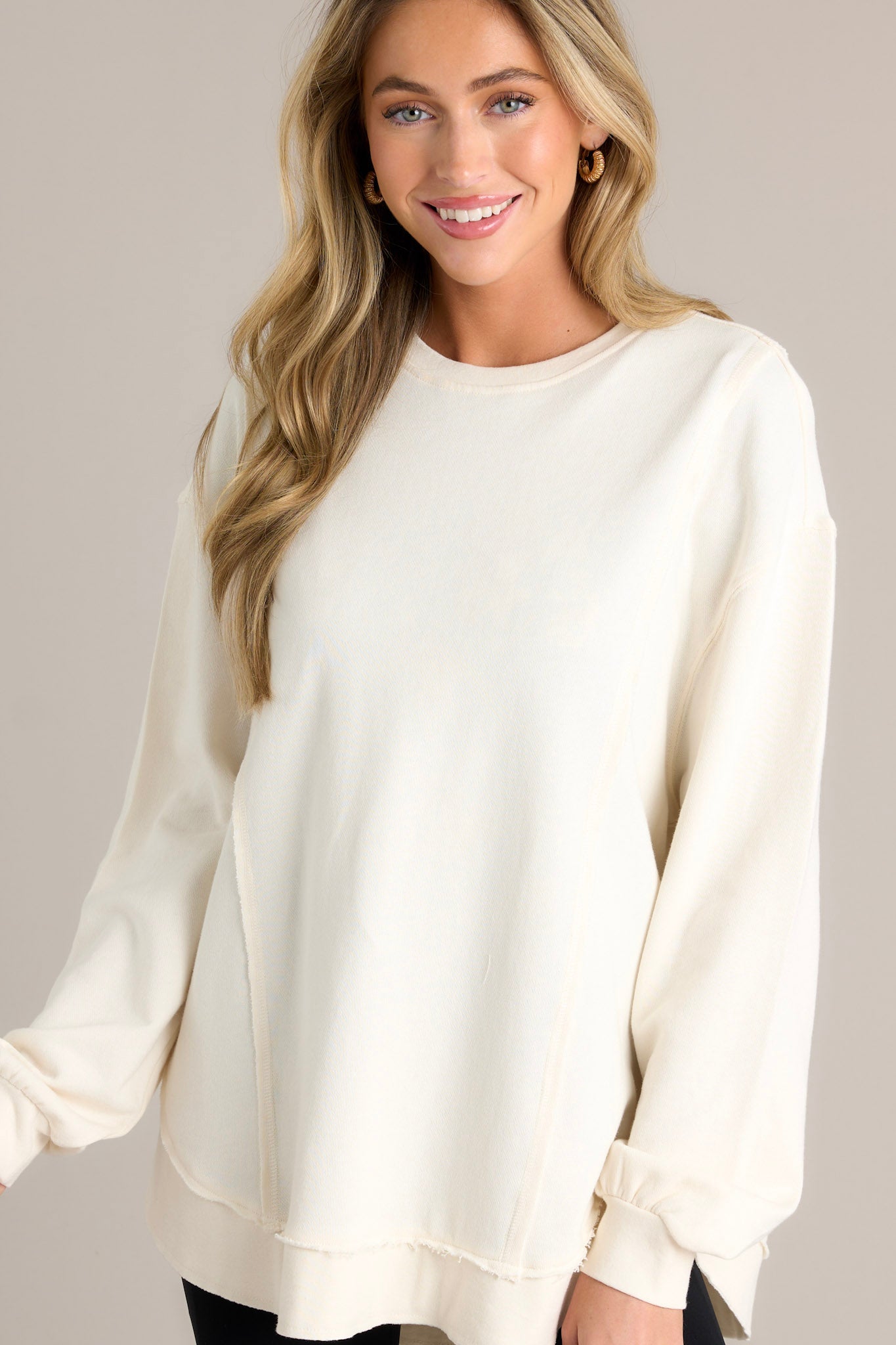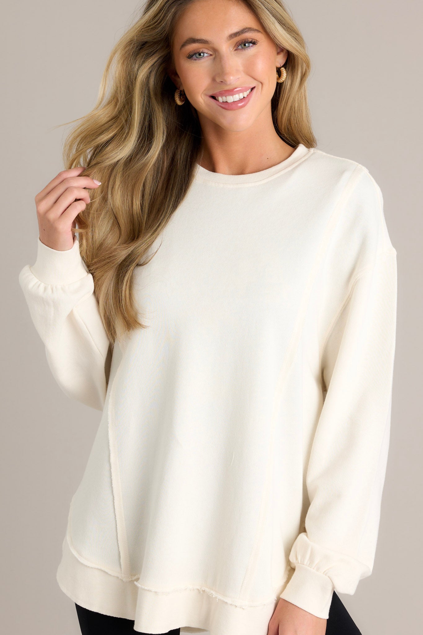 Looking to up your loungewear game? Look no further than the Z Supply Replay Sea Salt French Terry Sweatshirt! With its cozy French terry fabric and unique sea salt wash, this sweatshirt is the perfect blend of comfort and style. Grab one in every color to spice up your casual wardrobe. This sea salt sweatshirt features a crew neckline, a long sleeve, frayed detailing, and a curved hemline.