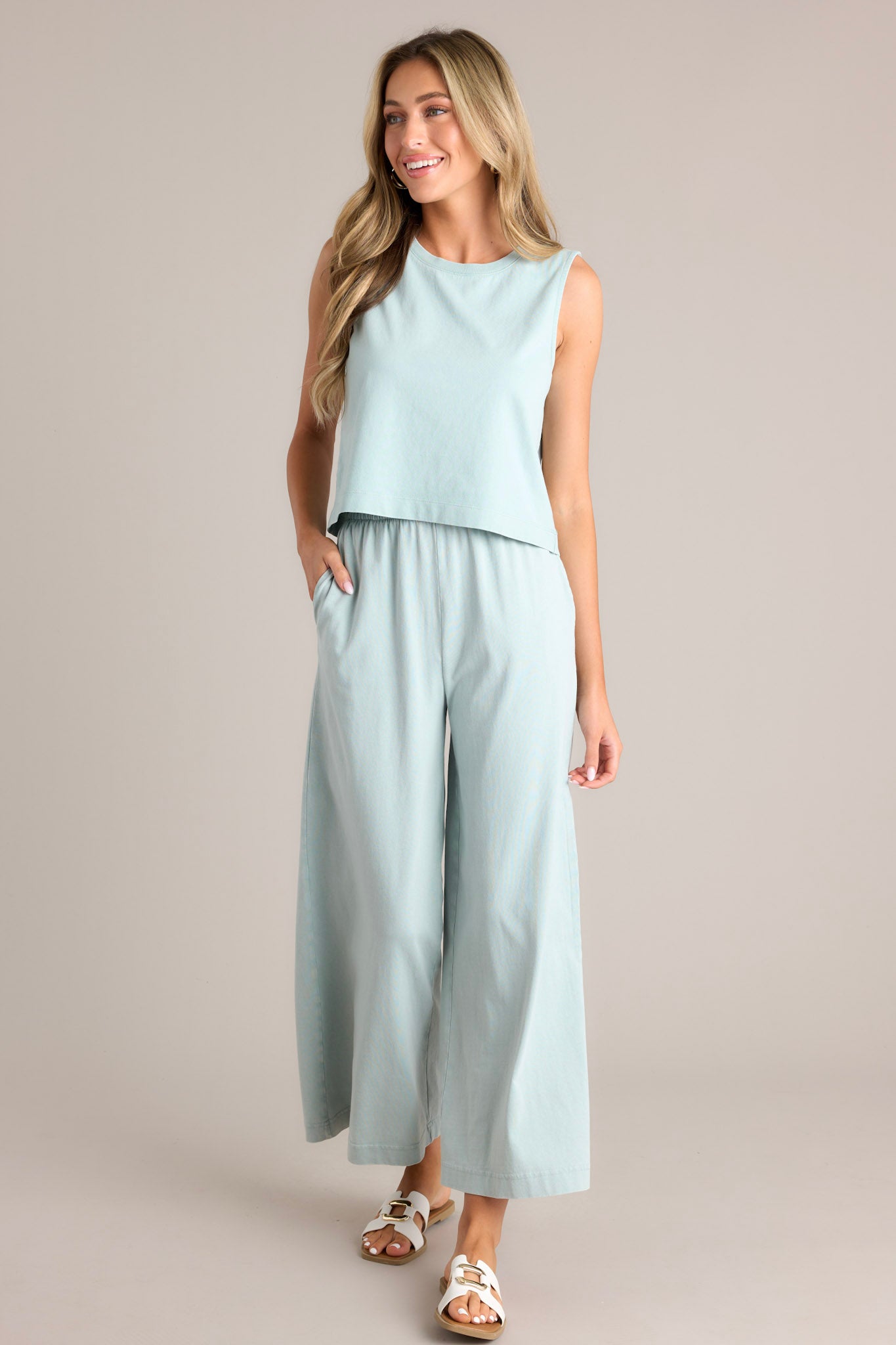 Stay cool and stylish with the Z-Supply Sloane Harbor Gray Cotton Jersey Tank. Made with soft, breathable cotton jersey, this tank features a harbor gray color for a versatile look. Perfect for any laid-back occasion, this tank will keep you comfortable and chic. This harbor gray jersey tank features a ribbed scoop neckline, a wide sleeve, a high back, and a cropped design.